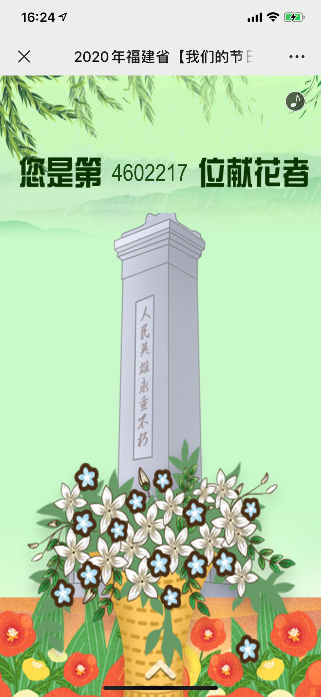 黨員干部們通過(guò)關(guān)注“文明福建”微信公眾號(hào),參與2020年福建省【我們的節(jié)日?清明】網(wǎng)上祭英烈活動(dòng)。大家紛紛向犧牲在抗疫一線的英雄們致以崇高的敬意,認(rèn)真學(xué)習(xí)先烈們的英雄事跡和革命精神,參與清明知識(shí)問(wèn)答,并為先烈們獻(xiàn)上鮮花,寫(xiě)下寄語(yǔ),寄托對(duì)英烈的哀思。