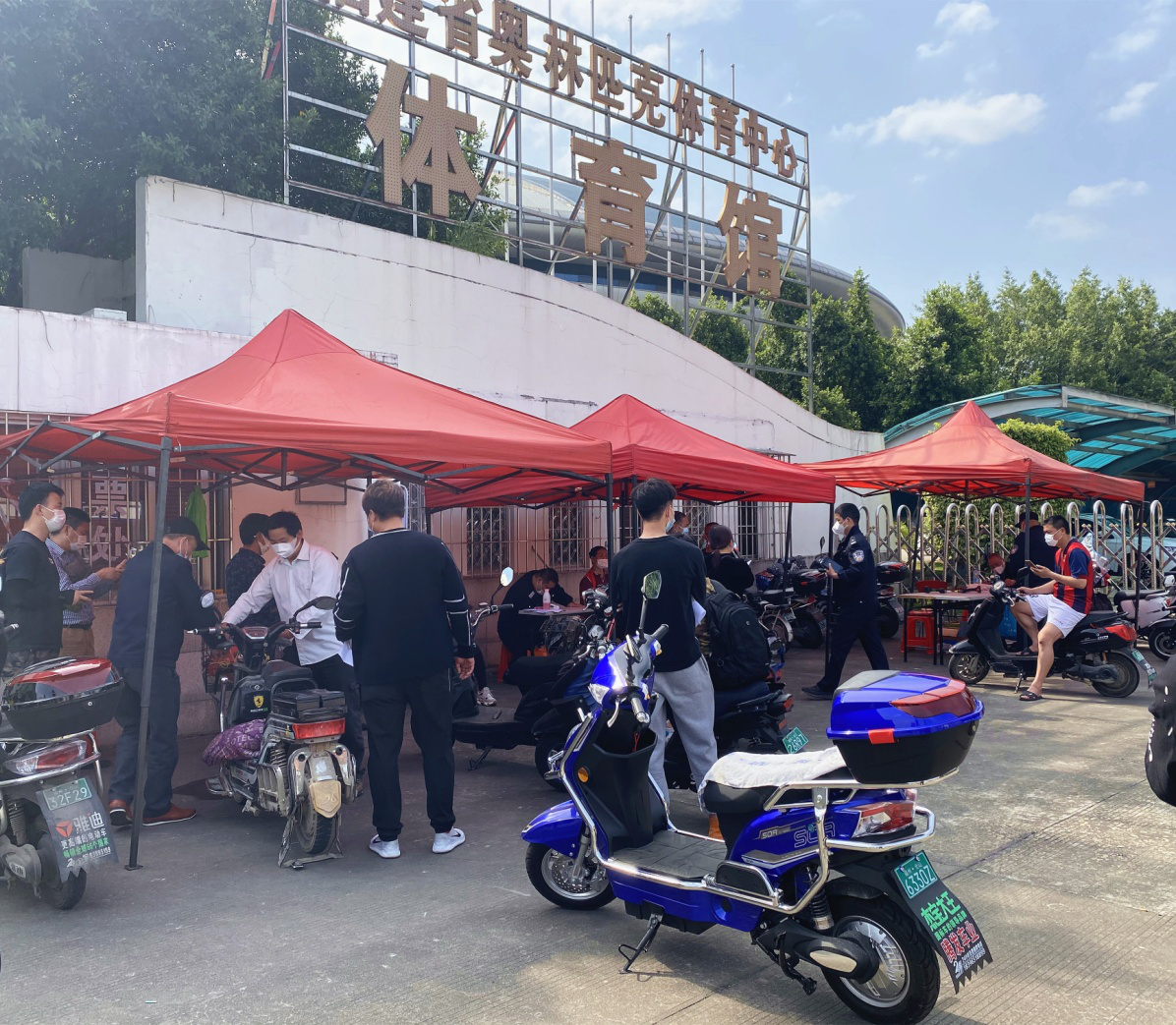 省奧體中心助力開展電動(dòng)自行車換牌工作