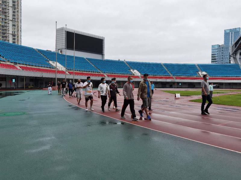 本次健步走活動(dòng)總行程為2.5公里,隨著發(fā)令槍響,活動(dòng)正式開(kāi)始。大家從體育場(chǎng)風(fēng)雨跑道出發(fā), 每5個(gè)人一組,出發(fā)每次間隔2分鐘?;顒?dòng)中,職工們三五成群,保持間距,邁著矯健的步伐,闊步前行。