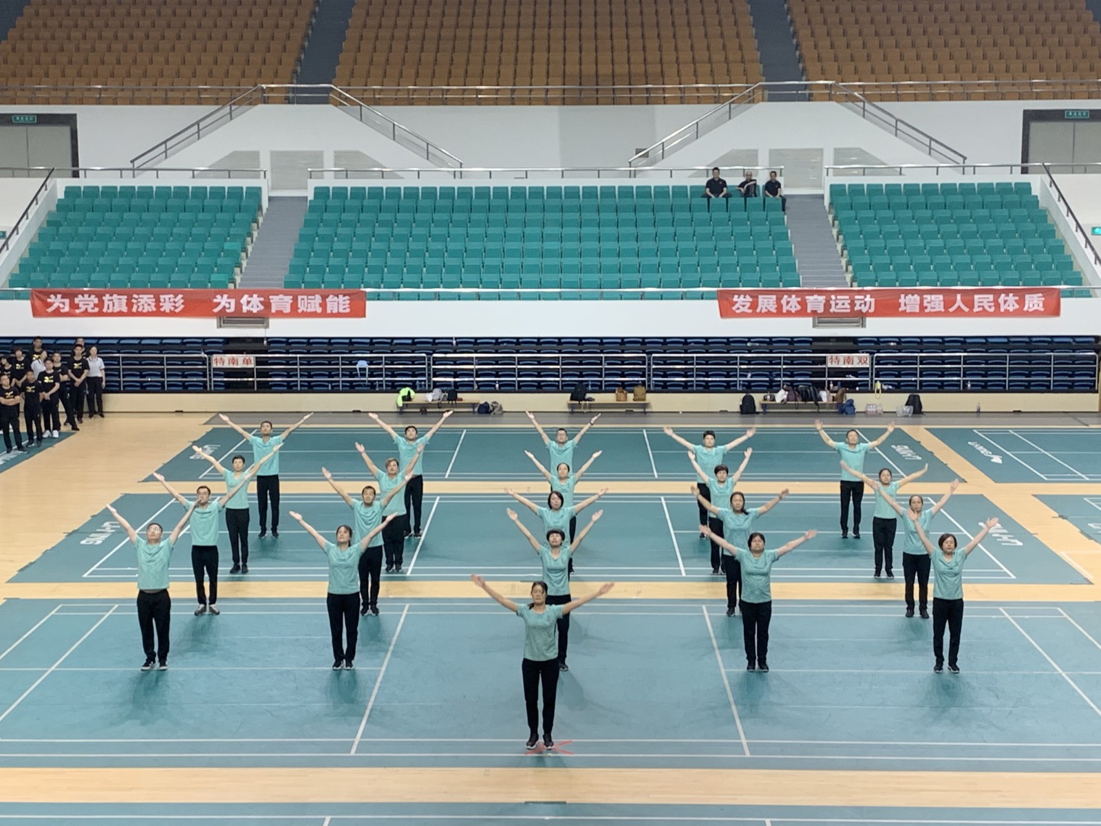 第九套廣播體操充分吸收前八套廣播體操優(yōu)點(diǎn)的基礎(chǔ)上創(chuàng)編而成,具有“規(guī)范性、科學(xué)性、普適性、健身性、針對(duì)性、時(shí)代性、前瞻性”等特點(diǎn),易學(xué)易記,符合大眾鍛煉實(shí)際與需求,近些年來(lái)廣泛的得到了各大學(xué)校及社會(huì)健身團(tuán)體的青睞。為確保此次賽事的順利舉行,我中心認(rèn)真做好賽前籌備及賽事期間后勤保障工作,確保廣播操比賽各項(xiàng)工作順利開展。
