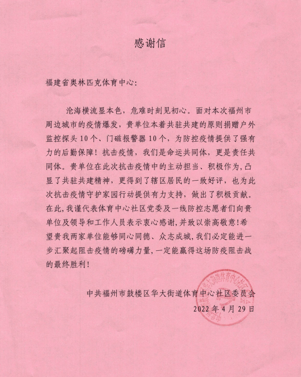 為進(jìn)一步深化共駐共建活動(dòng),助力體育中心社區(qū)做好居家隔離人員的監(jiān)管工作,緩解社區(qū)防疫一線工作人員人少事多、任務(wù)繁重的難點(diǎn)問(wèn)題,近日,省奧體中心在了解到體育中心社區(qū)疫情防控需求后,主動(dòng)作為,向其捐贈(zèng)戶外監(jiān)控探頭及門(mén)磁報(bào)警器10套,為社區(qū)疫情防控提供了強(qiáng)有力的保障。