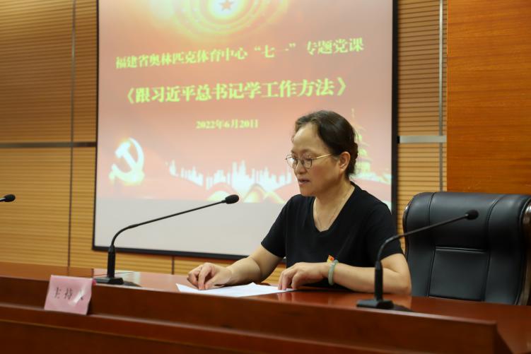 為慶祝建黨101周年,喜迎黨的二十大勝利召開(kāi),深入學(xué)習(xí)貫徹習(xí)近平新時(shí)代中國(guó)特色社會(huì)主義思想,提高中心干部職工的政治素養(yǎng)和理論水平,6月20日,省奧體中心邀請(qǐng)福建省委黨校、福建行政學(xué)院馬克思主義研究院副院長(zhǎng)、教授孫秀艷為全體干部職工講授《跟習(xí)近平總書(shū)記學(xué)工作方法》“七一”專題黨課。