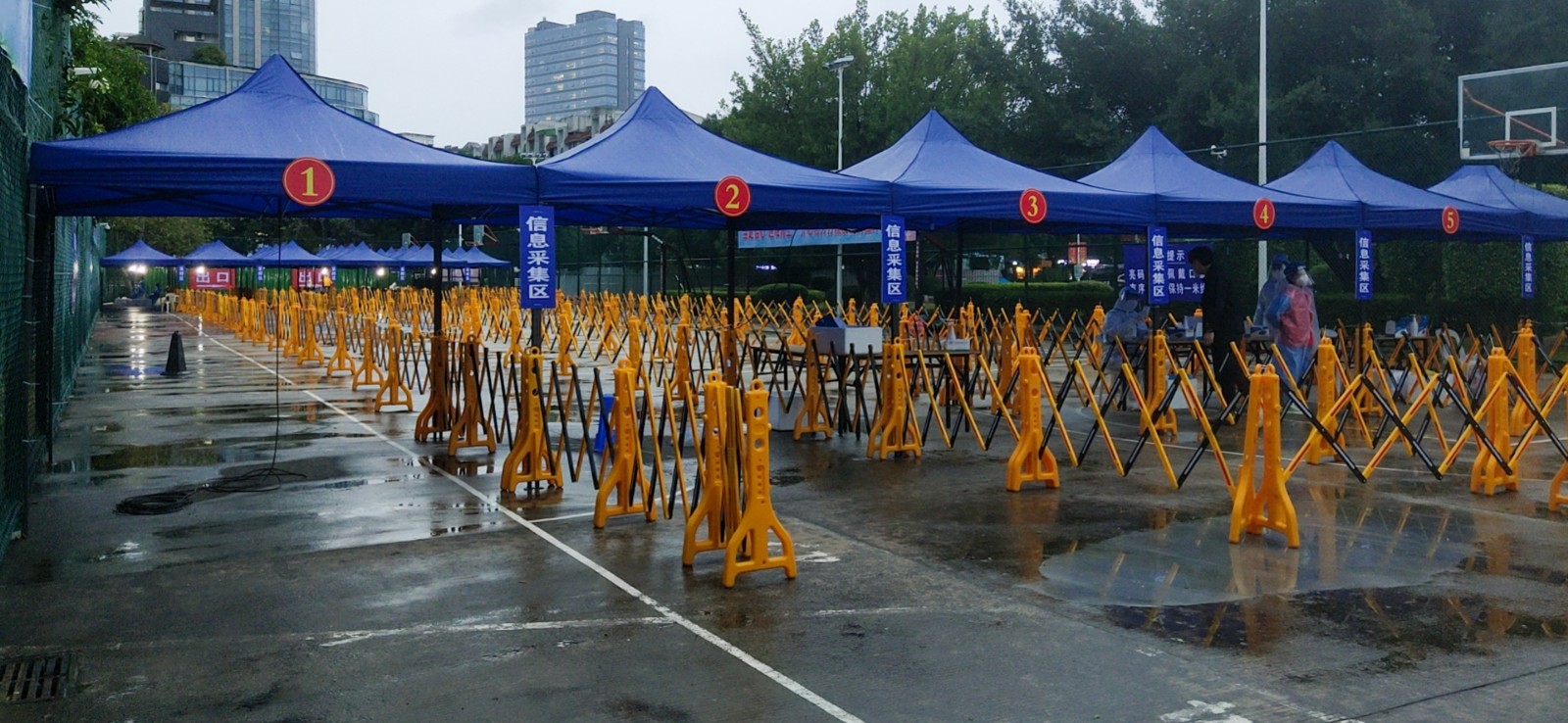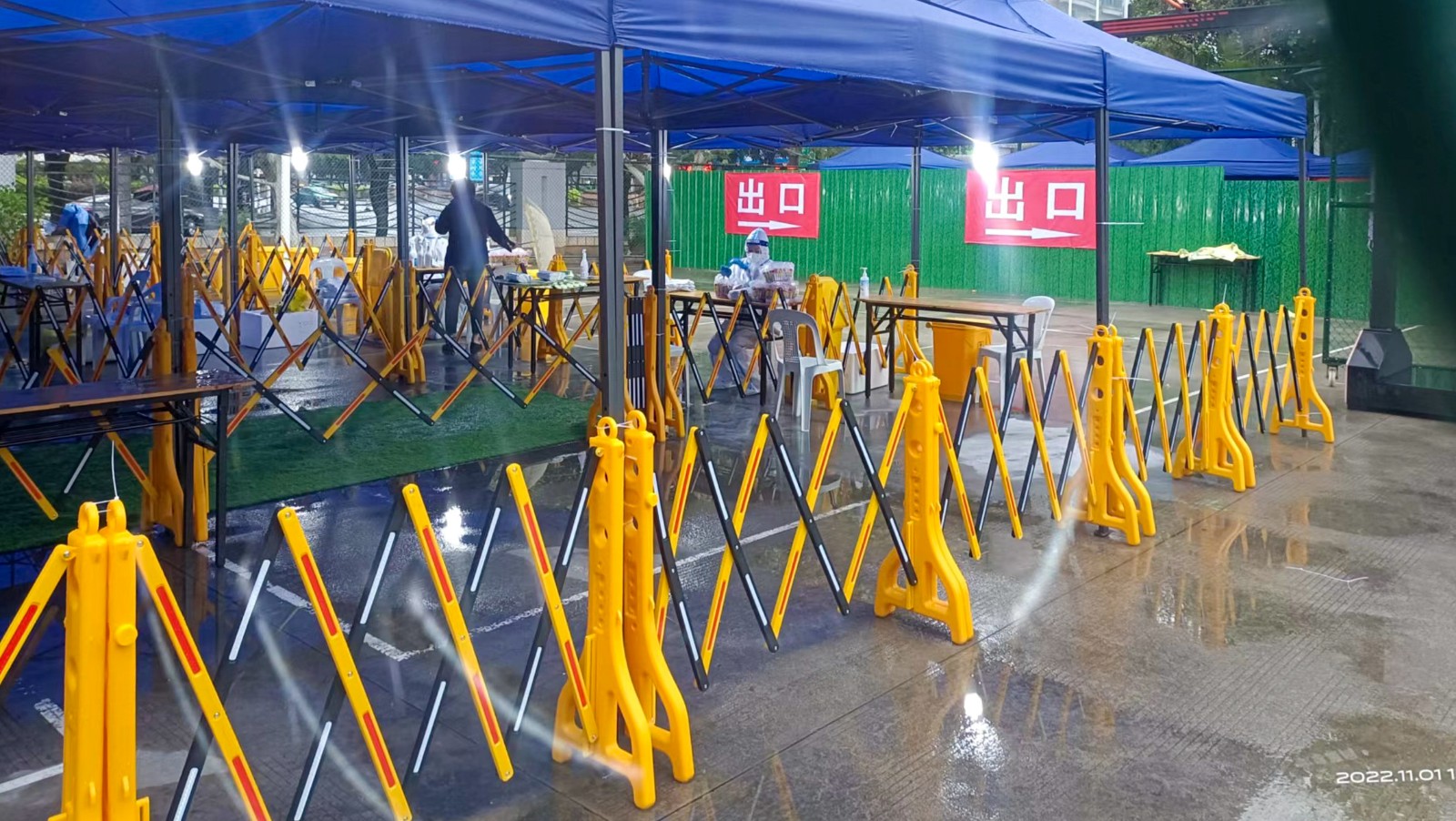 10月29日,省長趙龍前往該核酸采樣點實地檢查指導疫情防控工作落實情況,強調核酸檢測既要加速度又要提質量。為進一步幫助社區(qū)改善核酸檢測點的條件,我中心及時啟動,積極動員。在實地勘測了現(xiàn)場情況后,迅速確定了現(xiàn)場施工方案,關閉體育館東北角L區(qū)五片半籃球場,并火速調集設備及充足人員進場突擊協(xié)同作業(yè),不斷完善方案、緊急調撥物資、協(xié)調施工工序,兩次拓寬北二門核酸檢測點至東四門以北區(qū)域,無條件為核酸采樣點增加約2500㎡空地,同時我中心還主動將圍欄、水、電、網(wǎng)絡配備齊全,為北二門的核酸檢測點提供了強有力保障。在我中心的高效協(xié)作下,改造后的核酸檢測點已達3000㎡,有利于減少群眾排隊時間,提升核酸采集速度。