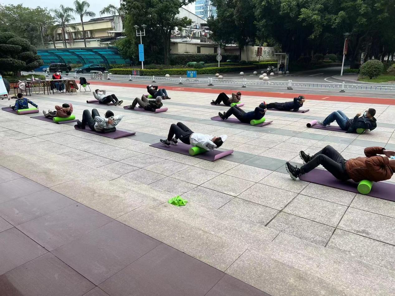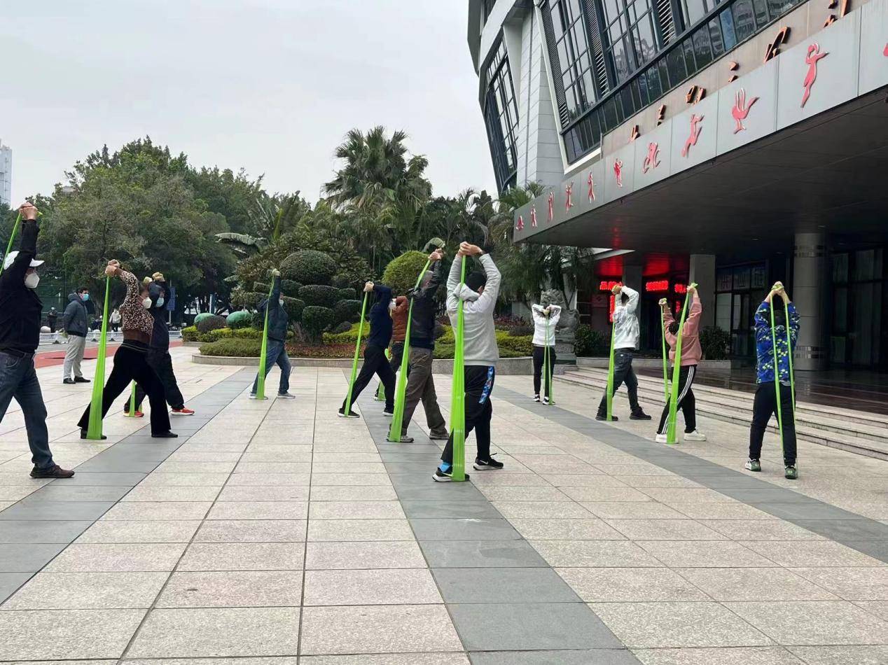 本次活動內(nèi)容形式多樣,有免費體質(zhì)測試、健身氣功八段錦動作練習(xí),還有彈力帶抗阻訓(xùn)練、泡沫軸放松、跑步機、攀爬機、爬梯機等有氧訓(xùn)練器材使用指導(dǎo),活動還向現(xiàn)場群眾發(fā)放了科學(xué)健身手冊。其中健身氣功八段錦的指導(dǎo)深受群眾歡迎,八段錦作為一項有千年歷史的養(yǎng)身操,長期堅持鍛煉能祛病強身、延年益壽,具有深厚的群眾基礎(chǔ)。在國家級社會體育指導(dǎo)員曾衛(wèi)紅的示范和指導(dǎo)下,大家神情專注,興致勃勃,一招一式跟著曾老師認真練習(xí)兩手托天理三焦、左右開工似射雕、調(diào)理脾胃須單舉、五勞七傷往后瞧、搖頭擺尾去心火等動作。