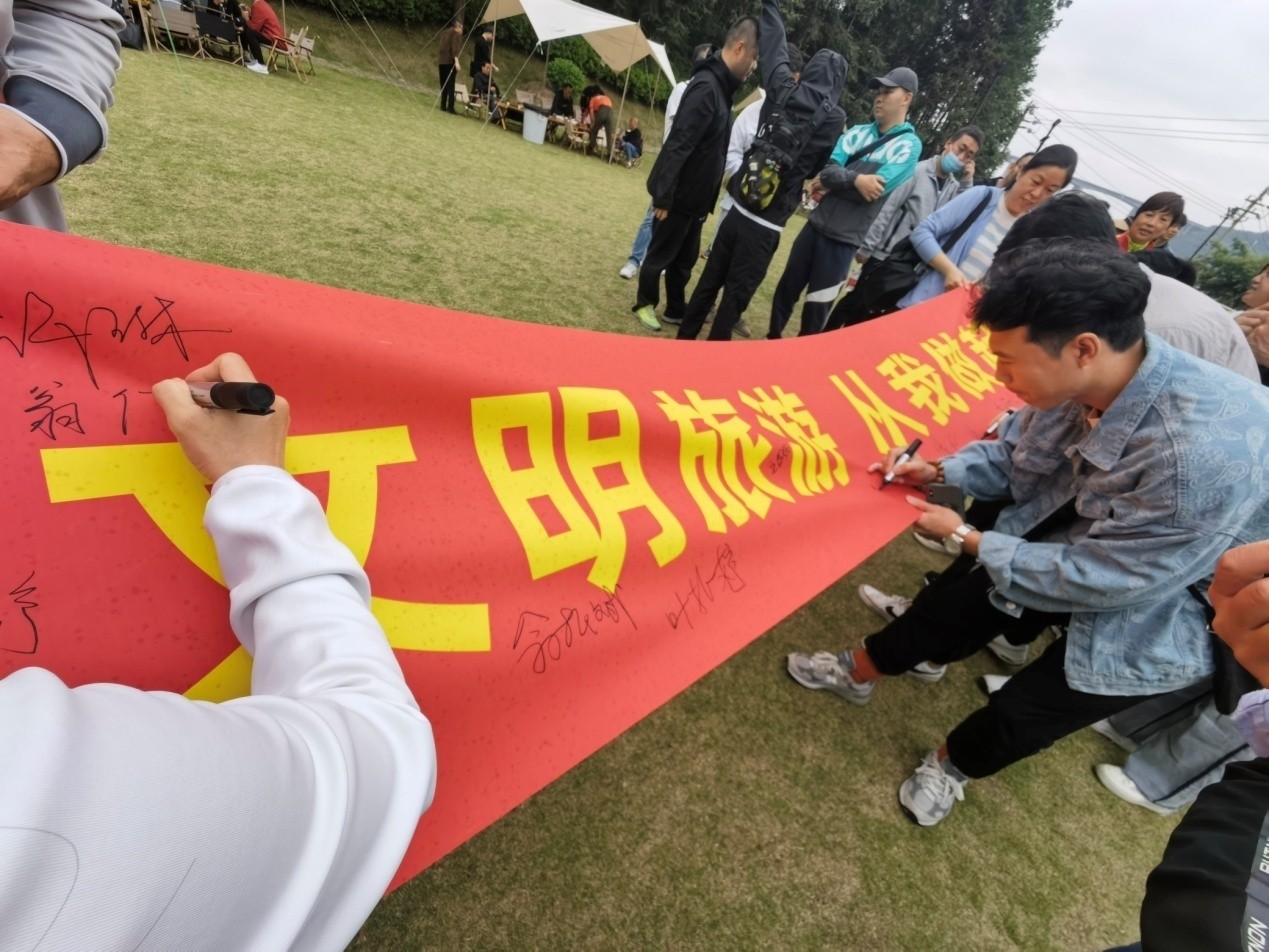 為倡導(dǎo)文明旅游新風(fēng)尚,引導(dǎo)干部職工增強(qiáng)文明旅游意識(shí),活動(dòng)還設(shè)置了橫幅簽名活動(dòng)的環(huán)節(jié)。大家紛紛在“文明旅游 從我做起”橫幅上鄭重地簽上自己的名字,并承諾將以身作則,用實(shí)際行動(dòng)做文明旅游的倡導(dǎo)者、傳播者和踐行者。