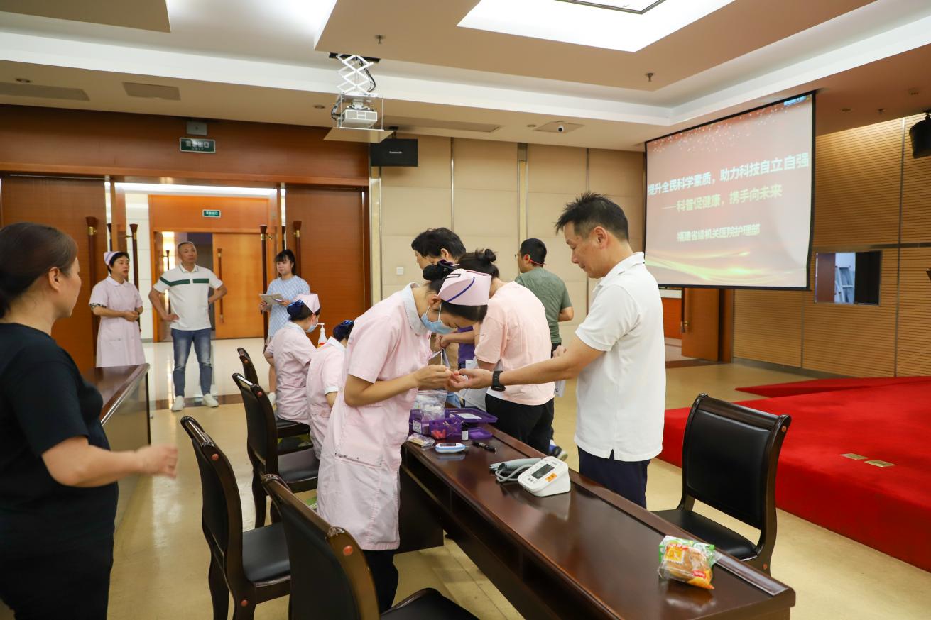 2023年9月19日上午,福建省省級(jí)機(jī)關(guān)醫(yī)院副主任徐光輝醫(yī)師圍繞突發(fā)意外事故的應(yīng)急處理向廣大職工講解了心肺復(fù)蘇及海姆立克急救法等急救知識(shí),講述了如何判斷救助者屬于需要心肺復(fù)蘇患者,包括意識(shí)、呼吸、心跳的判斷,并具體講解了救助過(guò)程中需要注意的問(wèn)題和經(jīng)常出現(xiàn)的錯(cuò)誤,讓廣大職工掌握更多的應(yīng)急救護(hù)知識(shí),從而有效減少工作、生活中突發(fā)事故帶來(lái)的危害,最大程度保障自身和健身群眾的生命安全。隨后,體檢中心護(hù)理組為我中心干部職工進(jìn)行健康體征測(cè)試,為大家測(cè)血壓、抽血檢查。