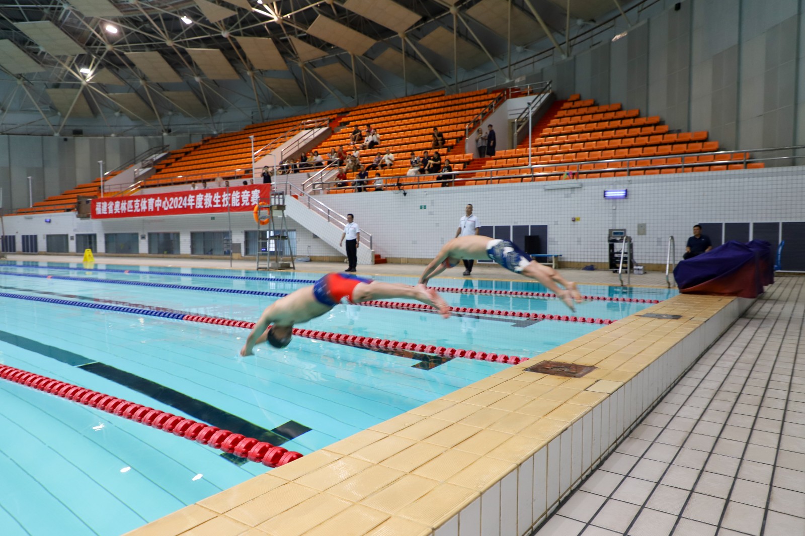 6月12日上午,省奧體中心2024年度救生技能競賽在中心游泳館舉辦。此次比賽采取團體賽制,我中心全體在崗救生員組成8支隊伍參賽,比賽設有100米運送假人接力、3×50米障礙接力、水中赴救、50米速度游四個項目。