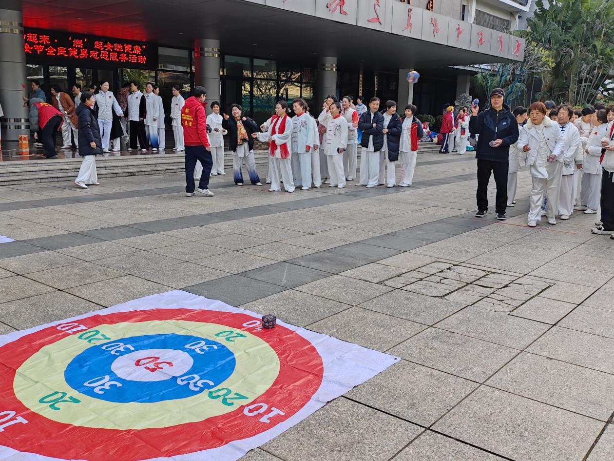活動現(xiàn)場,參與者在國家級社會體育指導員林玉萍、潘秀華等領學下,一招一式地感悟著太極拳、健身氣功的獨特魅力。接下來的趣味投壺和沙包投擲趣味運動項目,也極大地激發(fā)了群眾參與的熱情?,F(xiàn)場的加油聲和歡呼聲將活動推向高潮。