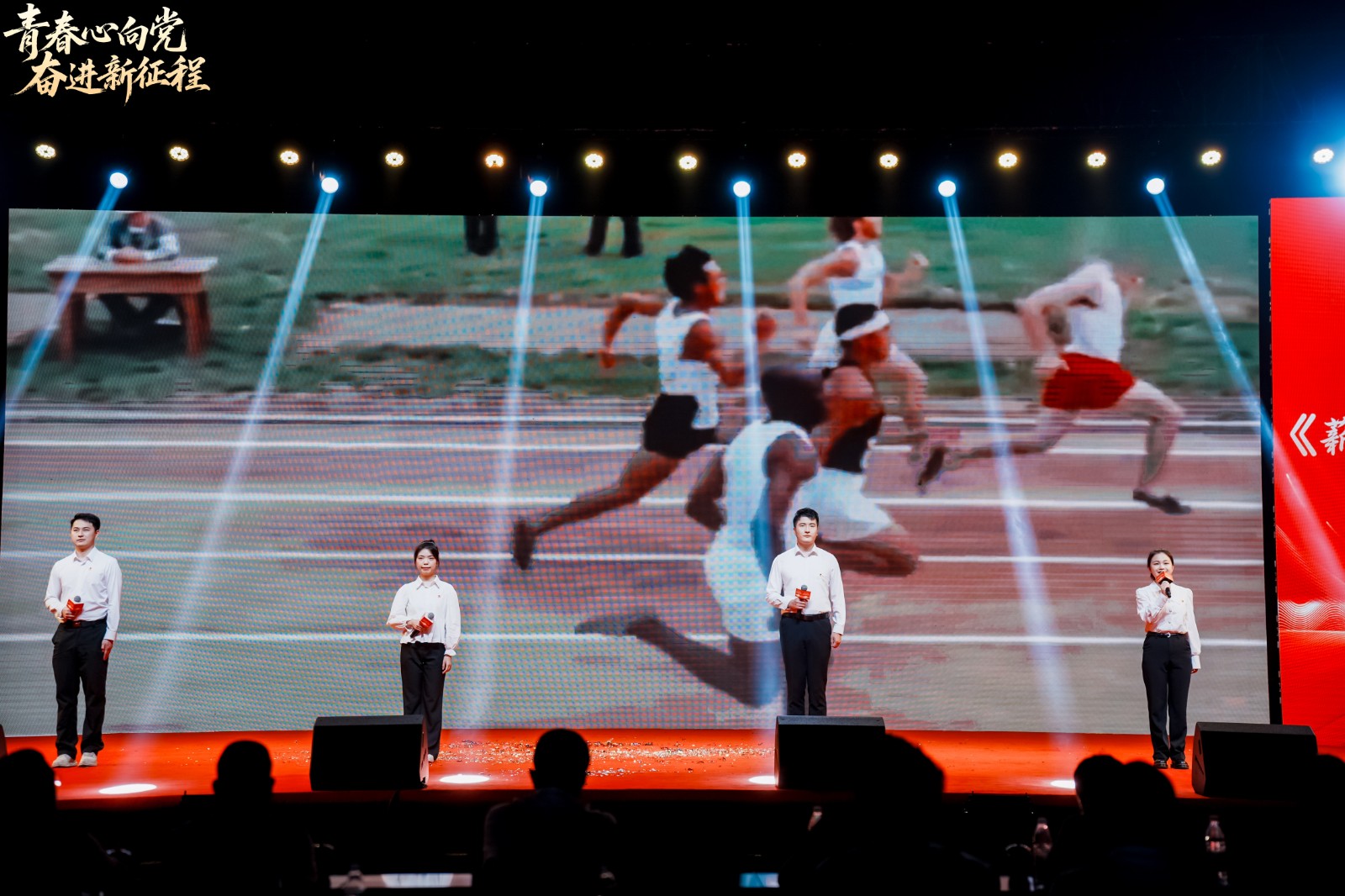 晚會上,省奧體中心青年代表們帶來了精彩的朗誦節(jié)目《薪火相傳,逐夢前行》。節(jié)目以“傳承紅色基因、弘揚體育精神”為主線,通過“歷史回響”“時代擔(dān)當(dāng)”“未來啟航”三個篇章,生動再現(xiàn)了從老一輩體育工作者艱苦創(chuàng)業(yè),到當(dāng)代青年全力備戰(zhàn)賽場的動人場景,將一代代體育人砥礪奮進的故事娓娓道來。舞臺上,演員們鏗鏘有力的詞句與飽含深情的演繹,生動展現(xiàn)了新時代體育青年的蓬勃朝氣,詮釋了傳承使命、賡續(xù)奮斗的堅定信念,引發(fā)現(xiàn)場觀眾的強烈共鳴。