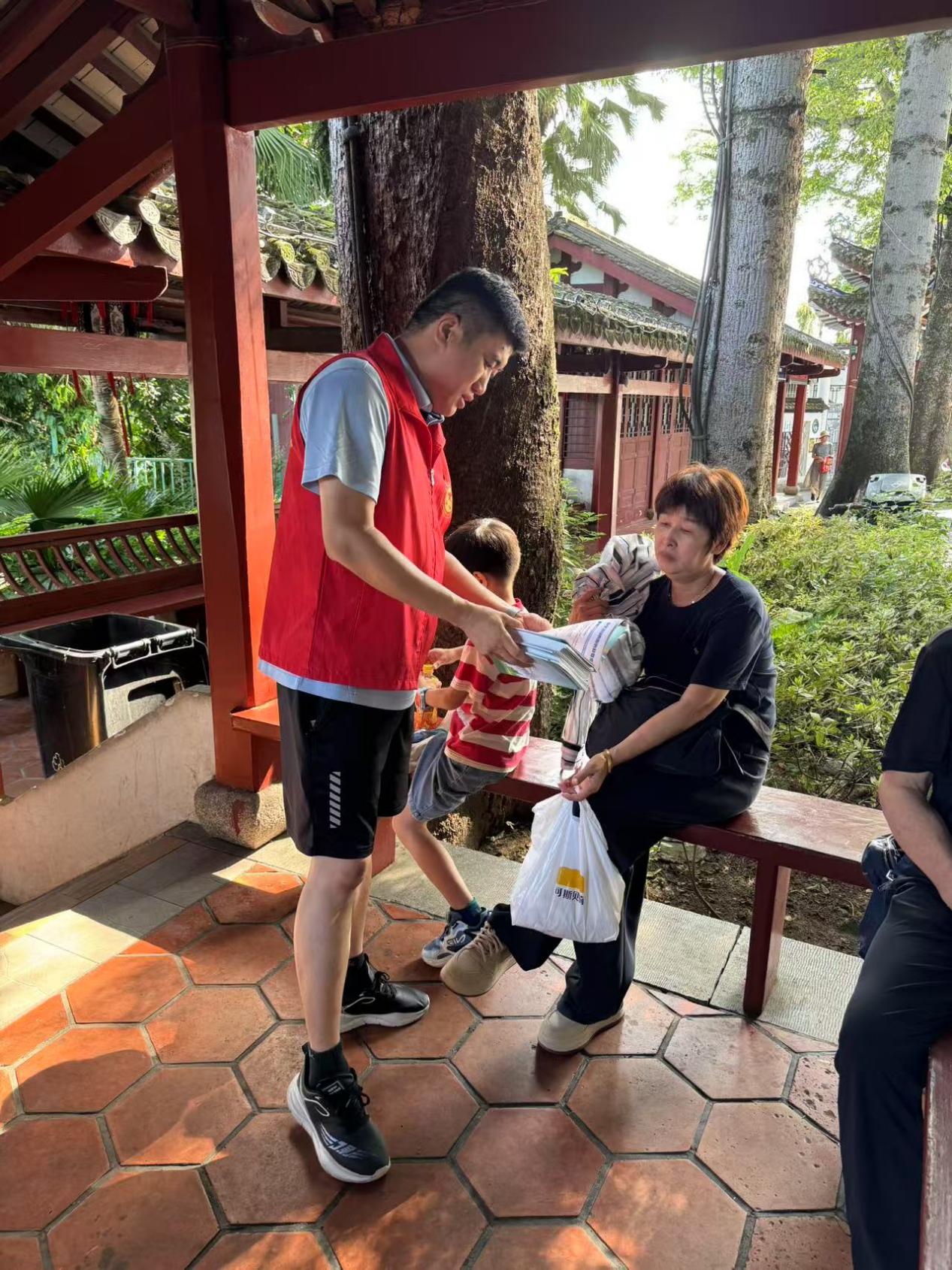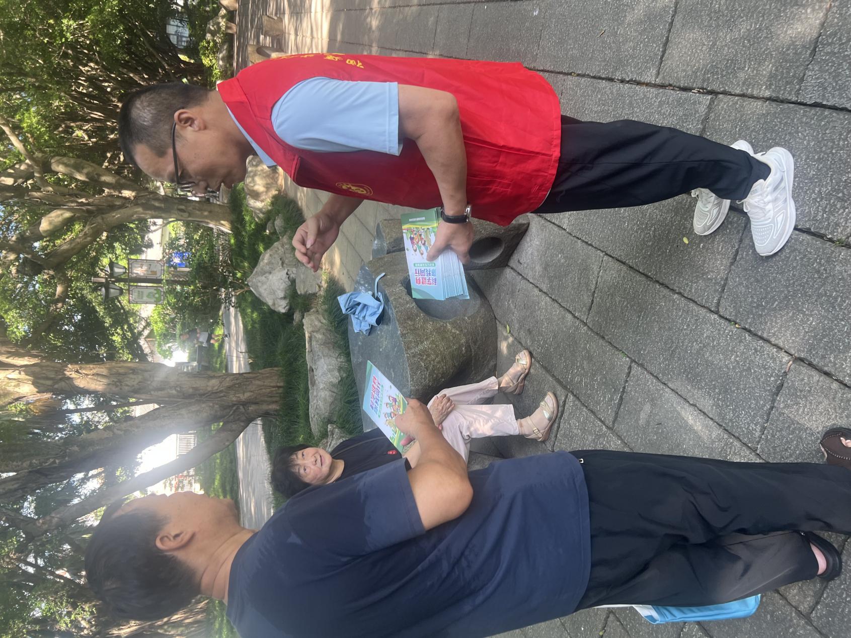 當(dāng)天一早,志愿者們便來到公園宣傳點位,將精心準(zhǔn)備的“體質(zhì)測試與科學(xué)健身”宣傳手冊一一向來往的群眾發(fā)放。宣傳冊內(nèi)容豐富、圖文并茂,不僅詳細介紹了國民體質(zhì)測試的項目及意義,還涵蓋了科學(xué)鍛煉的方法、合理飲食搭配建議、預(yù)防運動損傷等實用知識,受到了市民的熱烈歡迎。隨著公園人流量不斷增多,志愿者們熱情主動地耐心講解:“阿姨,您拿份宣傳冊看看,里面有很多適合您的健身小妙招,照著練能增強體質(zhì)?!薄靶∨笥岩部梢院桶职謰寢屢黄鹆私庖幌拢\動能讓你長得又高又壯哦!”親切的話語、真摯的笑容,迅速拉近了與市民的距離。