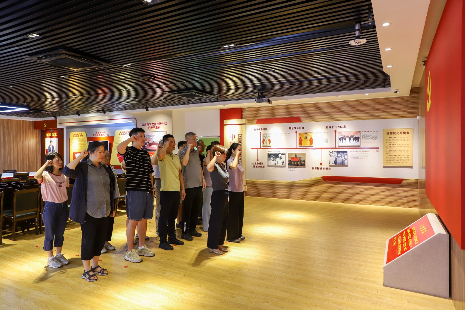 在展示館內(nèi),全體黨員依次參觀了“創(chuàng)新探索”“持續(xù)推動”“傳承弘揚(yáng)”三大主題展區(qū),通過豐富的歷史圖片、實物展陳、影像資料和生動情景再現(xiàn),大家系統(tǒng)回顧了“馬上就辦、真抓實干”精神在福州的發(fā)展脈絡(luò)和實踐歷程,深刻感悟了習(xí)近平總書記在福州工作期間率先垂范、大力倡導(dǎo)這一優(yōu)良作風(fēng)的崇高風(fēng)范。在講解員的引導(dǎo)下,黨員同志們深刻領(lǐng)悟了習(xí)近平總書記深厚的愛民情懷與銳意進(jìn)取的實干精神,對“馬上就辦、真抓實干”精神的核心要義與落地實踐有了更全面深刻的認(rèn)識。參觀過程中,雙方支部黨員圍繞學(xué)習(xí)內(nèi)容進(jìn)行了深入交流。在隨后舉行的重溫入黨誓詞儀式上,全體黨員以鏗鏘誓言回望入黨初心,共同慶祝中國共產(chǎn)黨成立104周年。