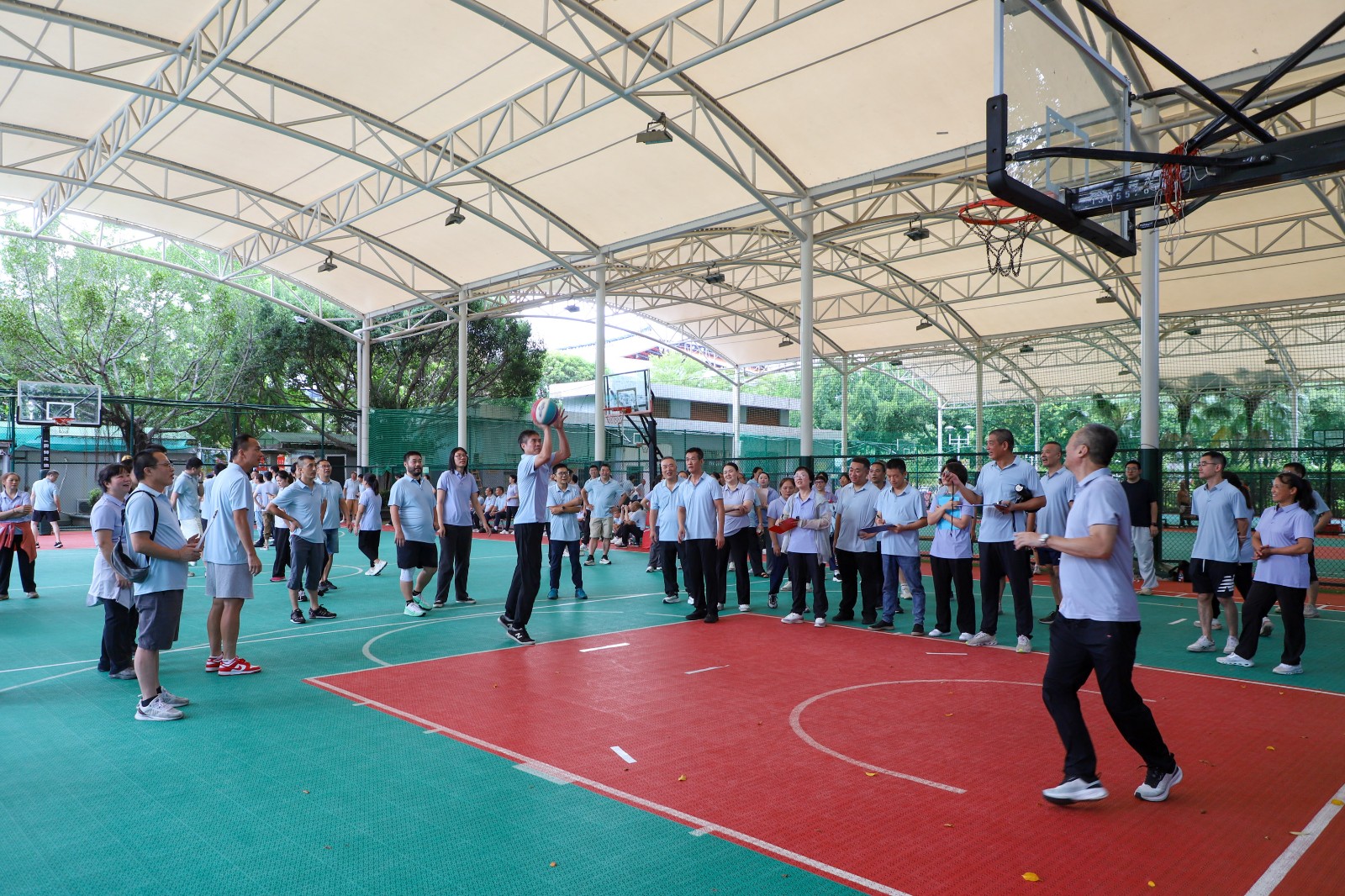 本次運(yùn)動會設(shè)置了電子飛鏢、定點投籃兩大項目,讓不同年齡段、不同運(yùn)動基礎(chǔ)的職工都能積極參與。比賽過程中,選手們熱情高漲、全力以赴。電子飛鏢賽場,大家屏息凝神,瞄準(zhǔn)靶心精準(zhǔn)投擲,每一次命中高分區(qū)域都引來陣陣喝彩;定點投籃場地,參賽職工身姿矯健,持球、起跳、投籃一系列動作流暢連貫,籃球入網(wǎng)的清脆聲響不斷回蕩在賽場。場下,未參賽的職工為選手們吶喊助威,掌聲、歡呼聲與笑聲交織在一起,賽場儼然成為一片歡樂的海洋。