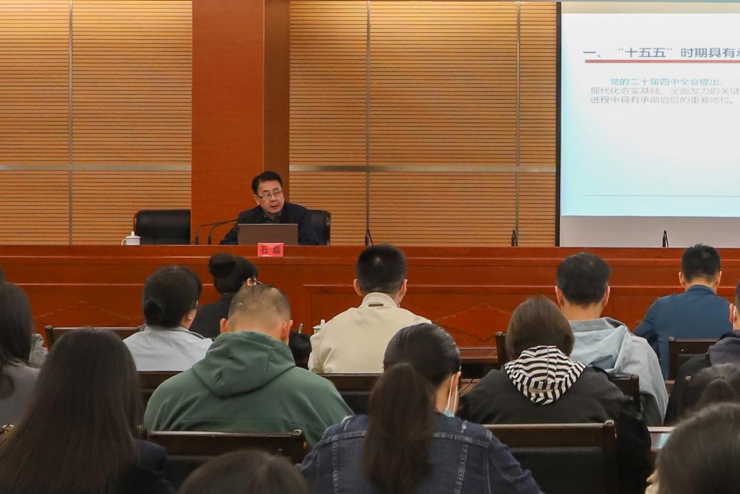講座上,石磊教授以《承前啟后 再開新局》為題,從新時代發(fā)展的新階段、新形勢、新任務(wù)出發(fā),深入闡釋“十五五”時期的關(guān)鍵歷史地位,梳理解讀經(jīng)濟(jì)社會發(fā)展應(yīng)遵循的六大根本原則,重點分析《“十五五”規(guī)劃建議》開啟新局面的思路舉措,對全會精神進(jìn)行了系統(tǒng)而生動的解讀。講座內(nèi)容視野宏闊、分析深入,既有理論思考的高度,又緊密結(jié)合現(xiàn)實發(fā)展實際,幫助干部職工更加全面地理解全會精神的核心要義與實踐要求。